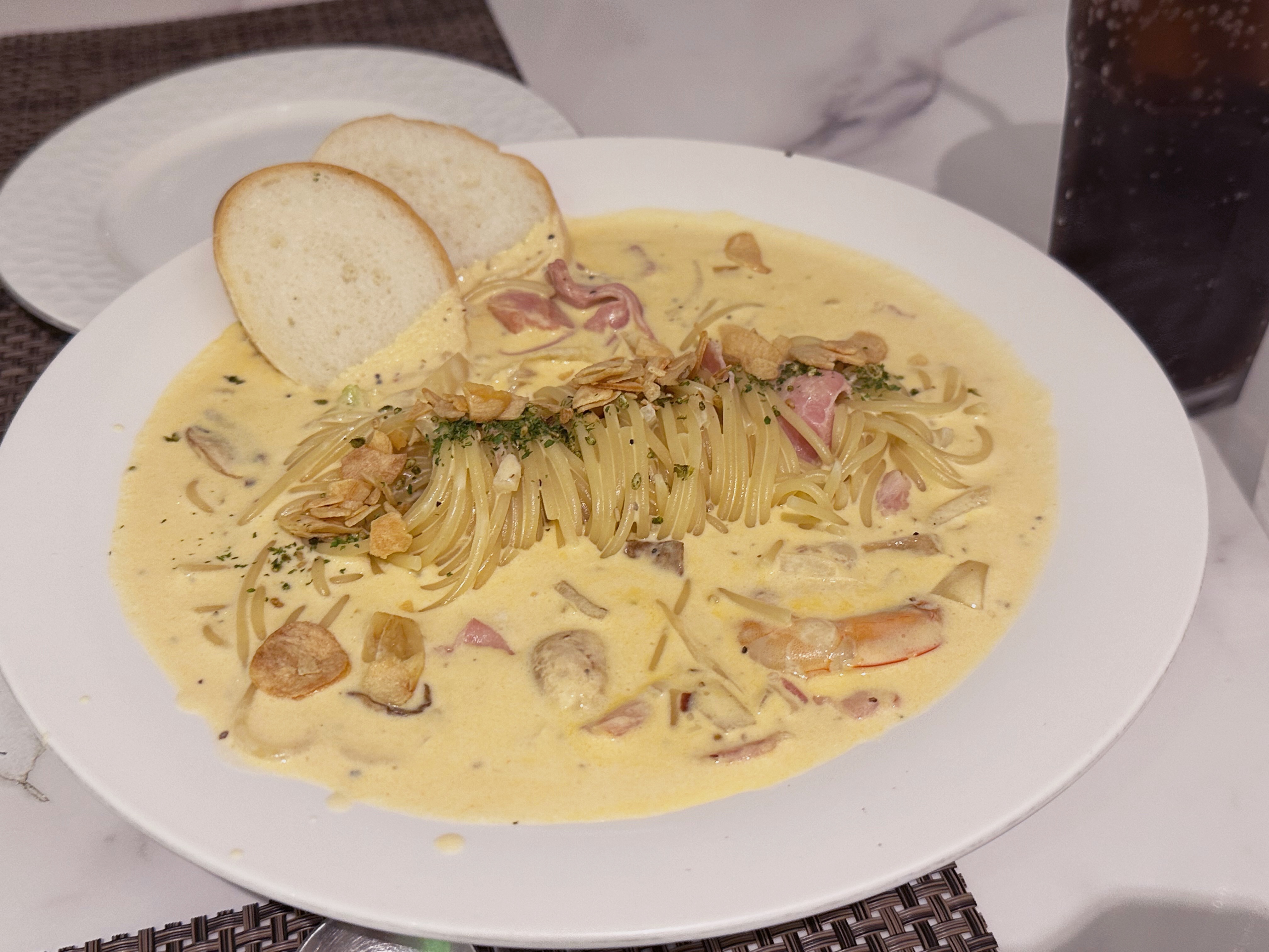 특히 크림파스타와 함께 나온 저 빵을 소스에 찍어서 먹으니, 촉촉하면서 부드러워 빵만 더 시켜 먹고 싶다 했답니다.