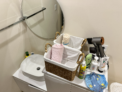 아이들을 위한 로션, 목욕가운뿐만 아니라 방수기저귀, 드라이기들이 다 구비되어 있어 좋아요.
