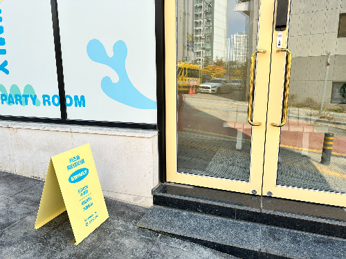 스윔리 건물 외부 모습이에요. 파스텔 노란색과, 파란색 입구가 벌써부터 화사하게 반겨주는 듯한 기분이 들었어요. 저기 문 앞에서 방문객들이 사진을 많이 찍던데, 꼬미는 아직 어려서 패스했답니다.